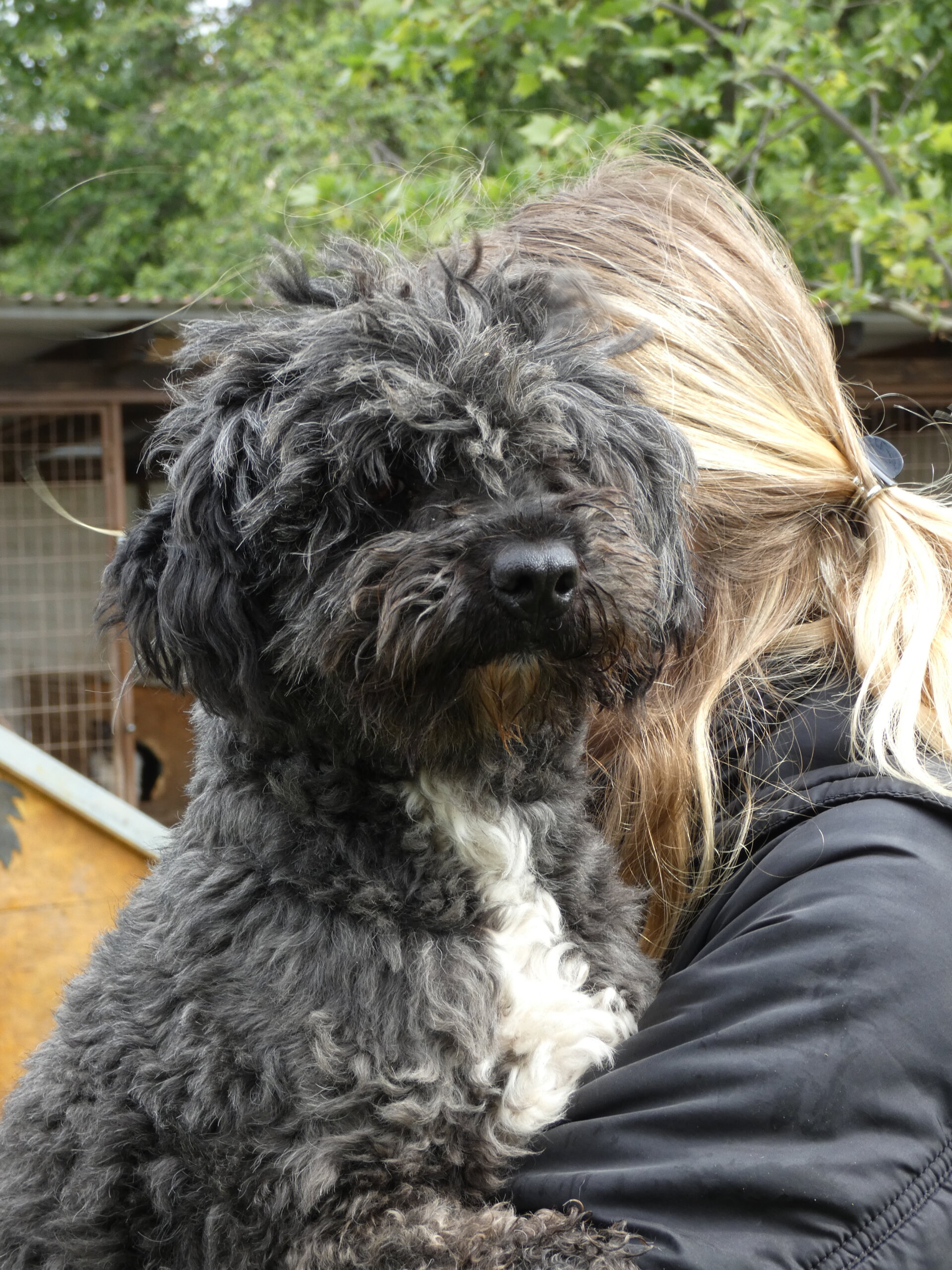 Munci 6 év körüli, talán puli-pumi mix kan.